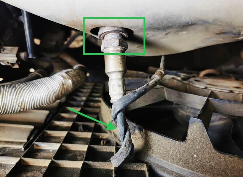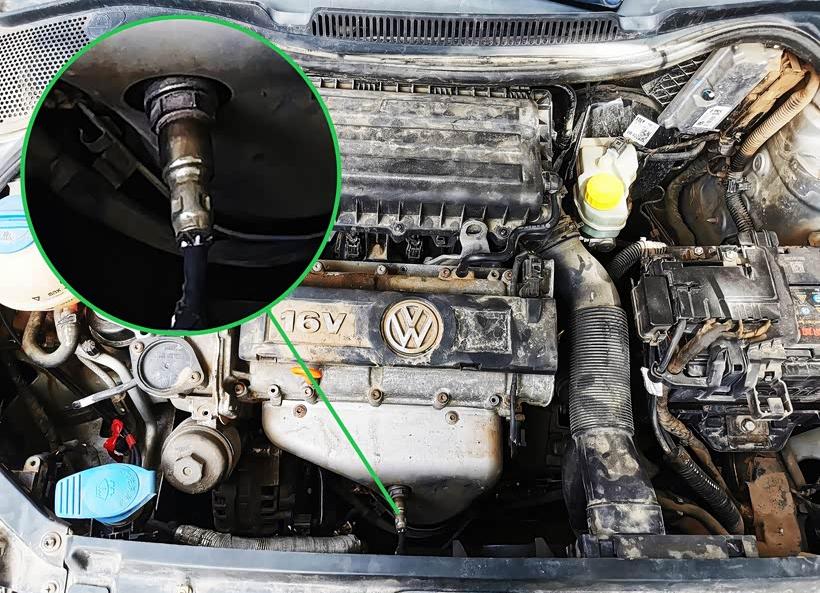 I'll use my Polo as an example. The upstream oxygen sensor in the Polo is located between the engine and the radiator. Its location is quite obvious, easy to observe, and also relatively easy to access.