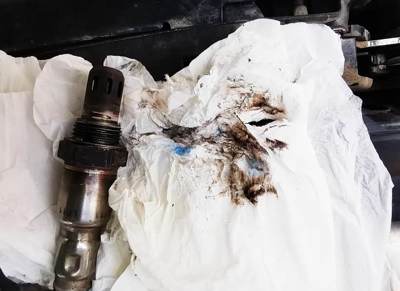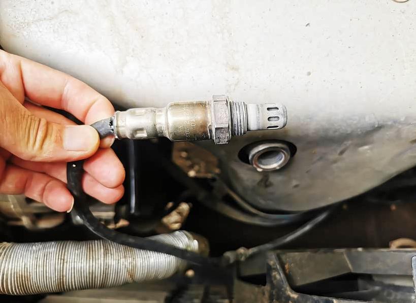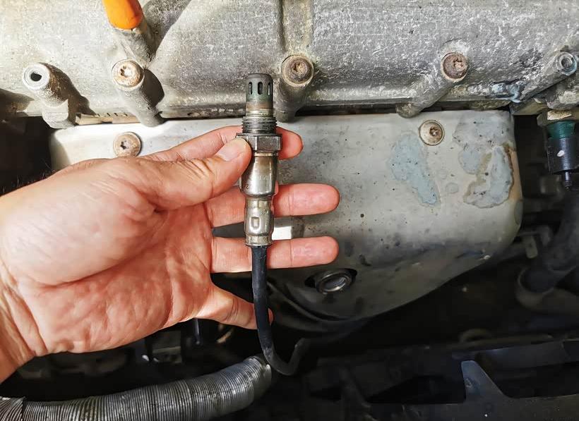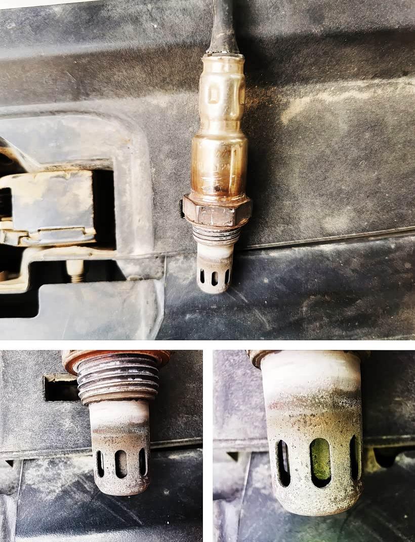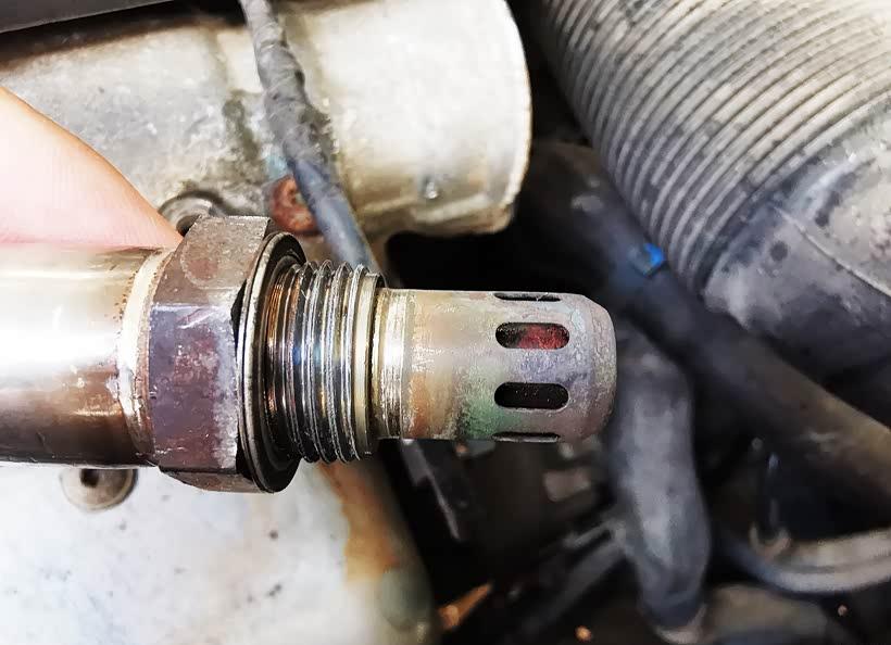 ∆ Look at the carbon buildup on the oxygen sensor.