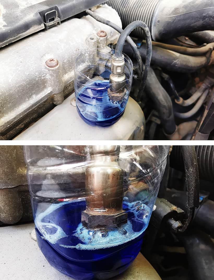 The cleaning agent of choice is toilet bowl cleaner (Note: Use with caution, specific chemicals designed for oxygen sensor cleaning are recommended), or carburetor cleaner could also work.