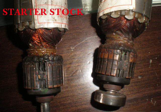 The commutator is that shiny copper surface the brush rides on. If it’s scored, grooved, or covered in gunk: